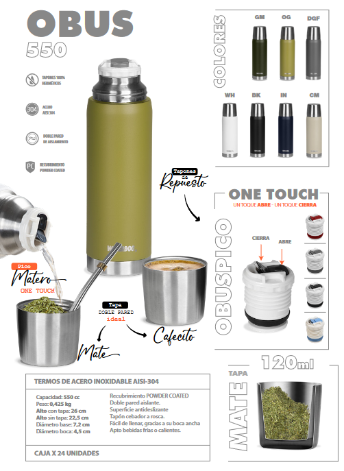• Tapa funcional, apta para utilizarla como mate o vaso.