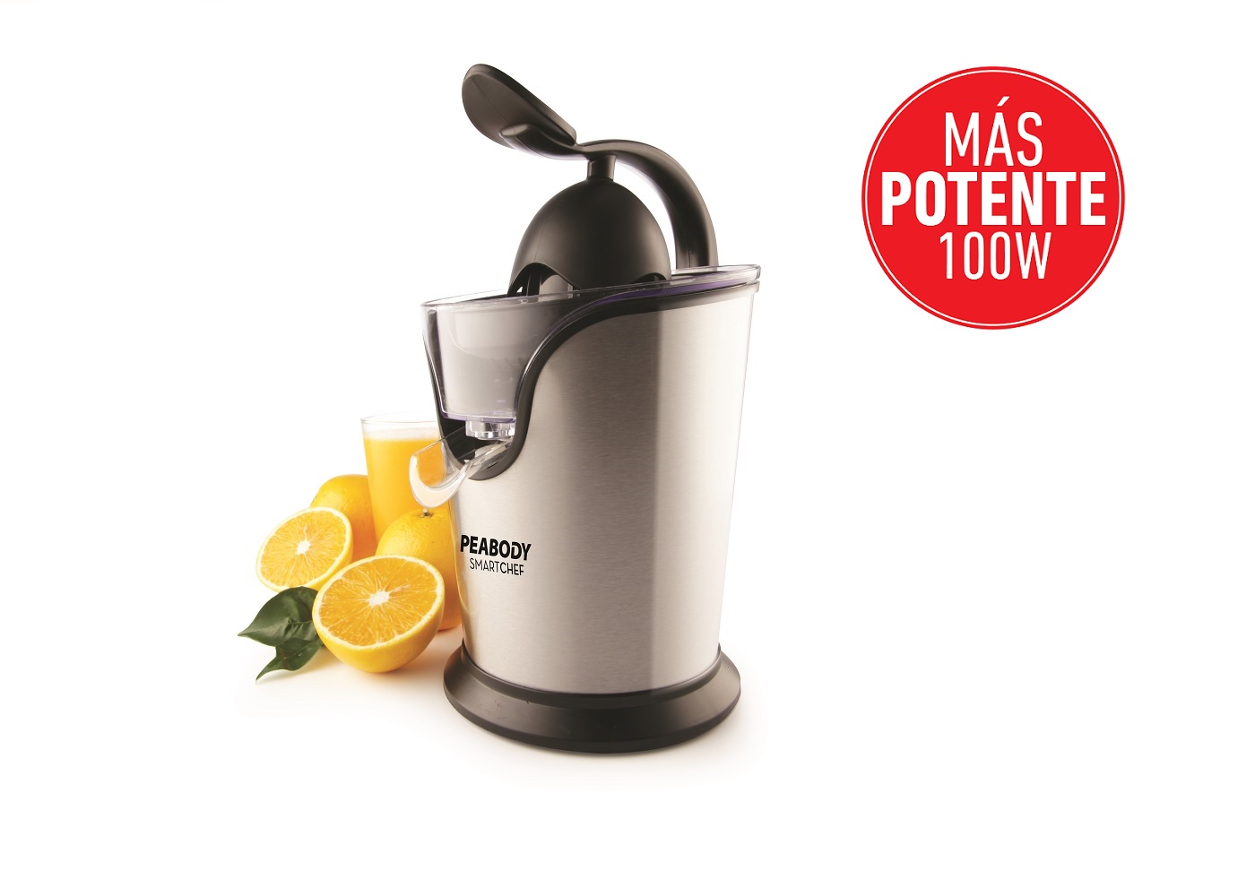 Exprimidor Eléctrico Peabody Smartchef PE-EC403IX con una potencia de 160W y cuerpo completo de Acero Inoxidable. Cuenta con desagote con función anti-goteo y manija metálica para ejercer presión sobre la fruta. Fácil de lavar y con un nivel de ruido de 67,2 dB.