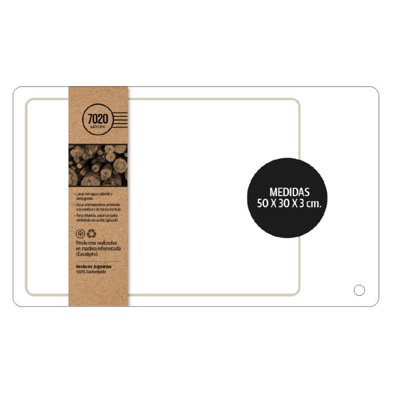 Tabla de cortar, de uso profesional para eventos y de uso diario para tus comidas. Apta para picar vegetales, cortar todo tipo de carnes y pescados, presentar picadas, e incluso para amasar. Su cara superior tiene un rebaje tipo canaleta para contener los líquidos. La cara inferior es completamente lisa. Medidas: 50X30X3Cm *Que NO hacer:* .Poner en lavavajillas. .Dejarla secando en el sol. .Dejarla sumergida en el agua por varias horas. ¡Cuidados! .Lavar con agua tibia, detergente y esponja. .Secar con repasador una vez lavada. .Dejarla secar de forma vertical. .Luego de varios usos, volver a curarla. ¿Cómo? Recomendamos aplicar con un paño o esponja vaselina líquida. También es útil el aceite de cocina natural, pero no se obtiene la misma terminación.