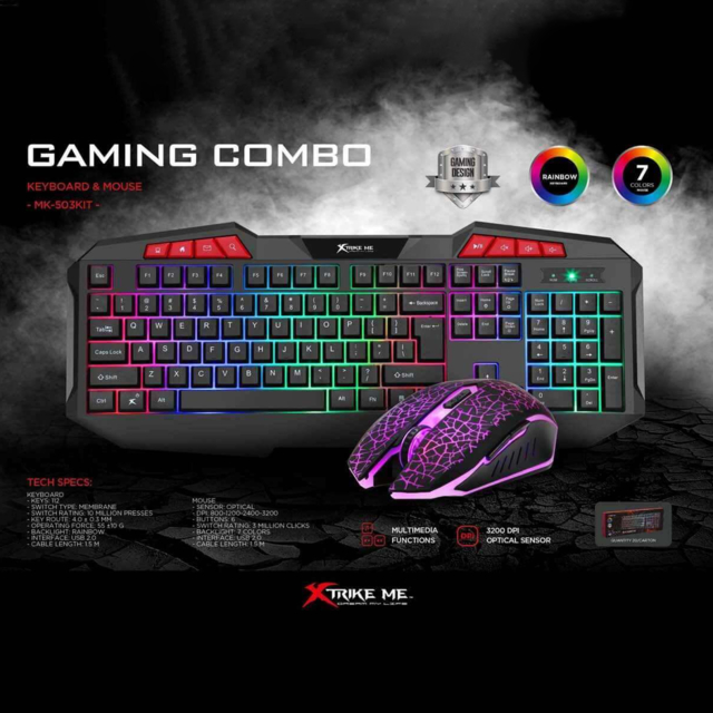 Luz de fondo de arco iris, alrededor de las teclas. Teclado: